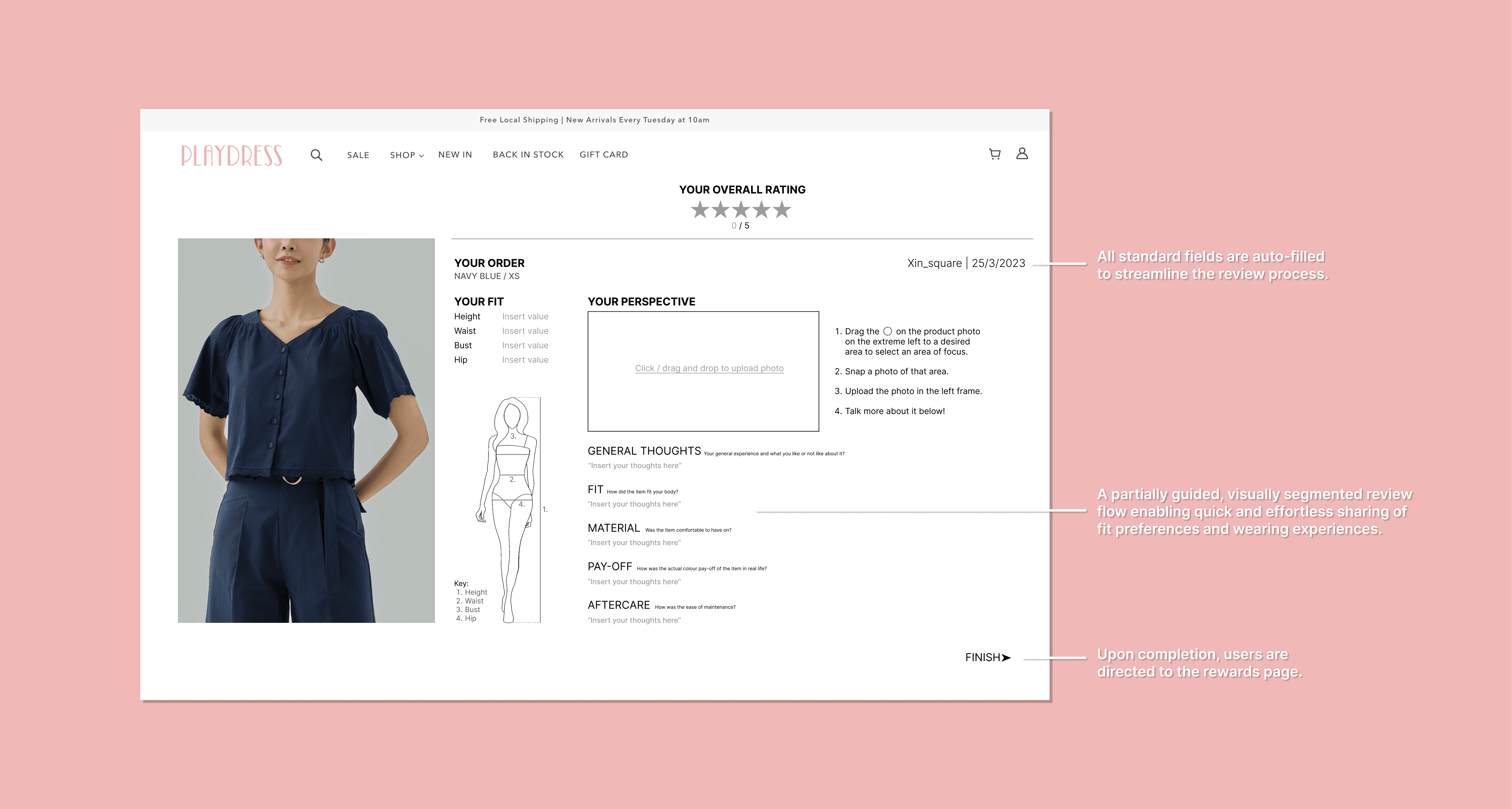 This project began with an evaluation of the existing Playdress online shopping experience, which, despite being visually clean and easy to navigate, relied heavily on dense textual information and lacked mechanisms that help users assess product fit, material quality, and real-life appearance. Initial analysis revealed that users often defaulted to offline stores for reassurance, highlighting a gap between browsing convenience and decision-making confidence in the online experience