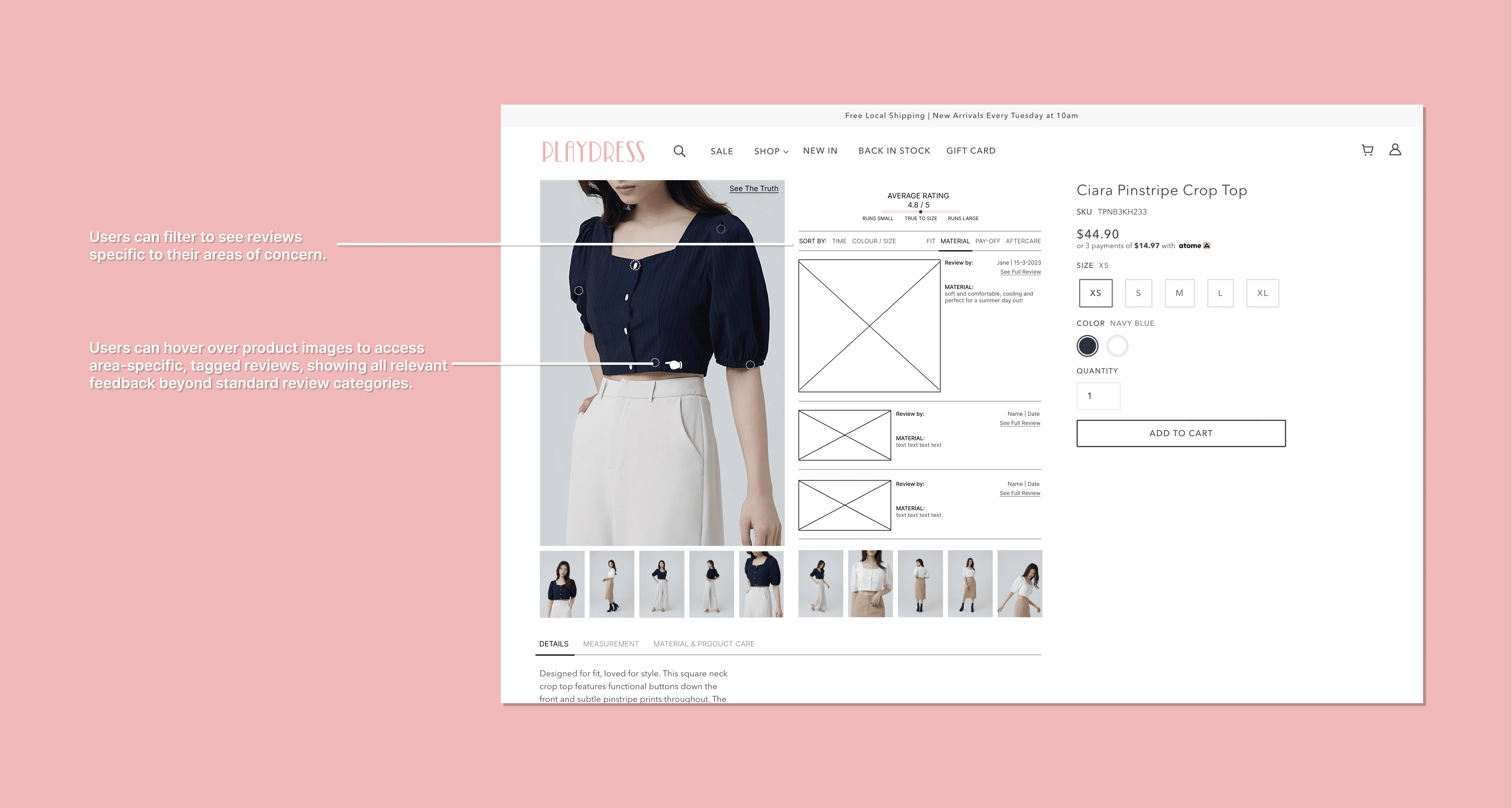 A key intervention was the “targeted reviews” system, allowing users to filter reviews based on specific concerns (e.g. fit or material), reducing cognitive load while increasing relevance.