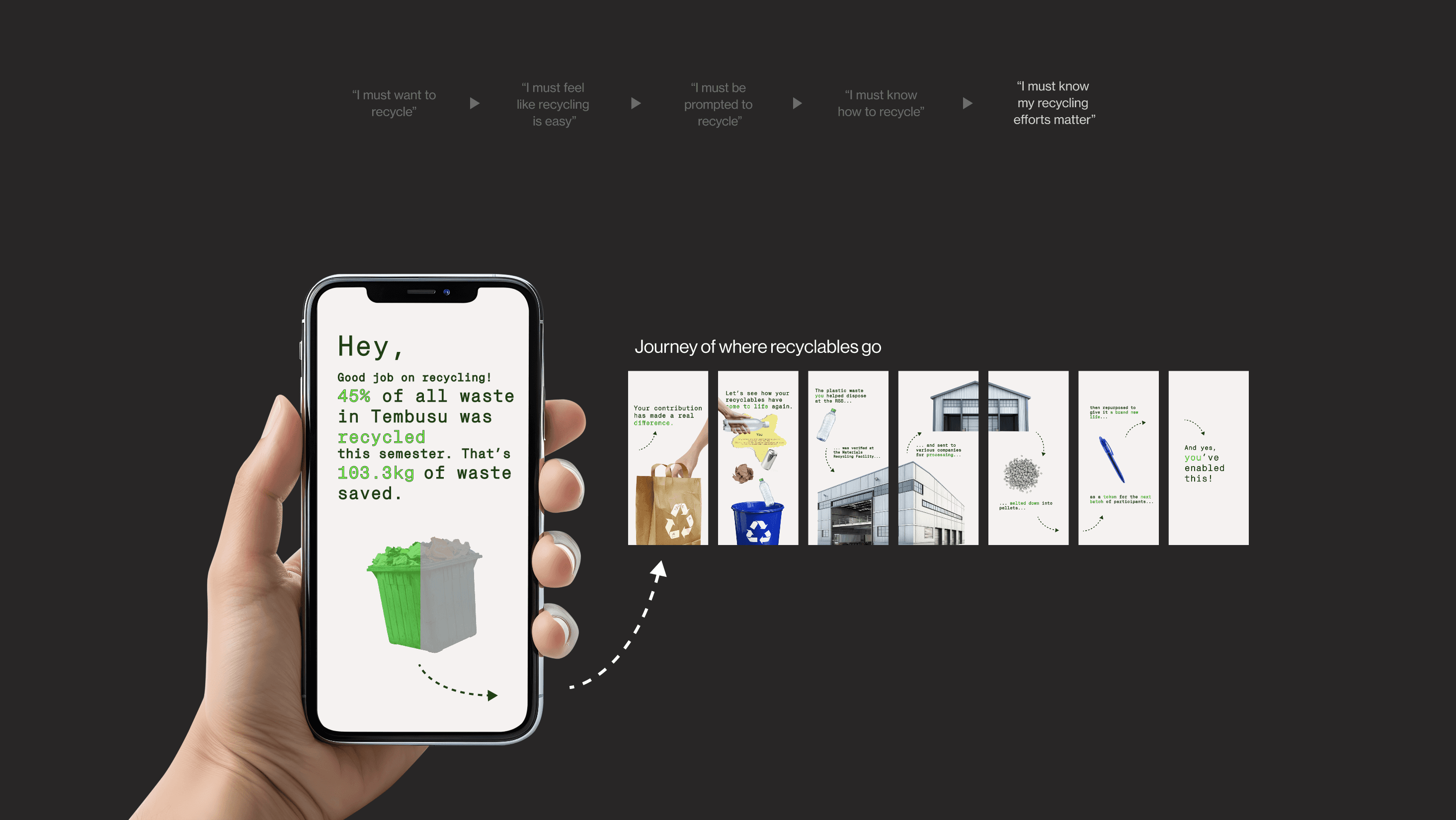 We demonstrated the framework through an opt-in semester-long program designed to mobilise would-be recyclers, students who already want to recycle, but need the environment to make it achievable.